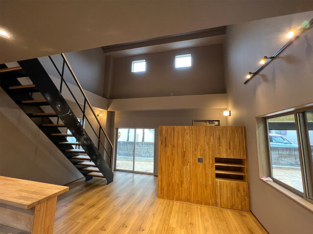 4柱リフトや、吹き抜けのリビングなどお施主様のこだわりをカタチにしました。