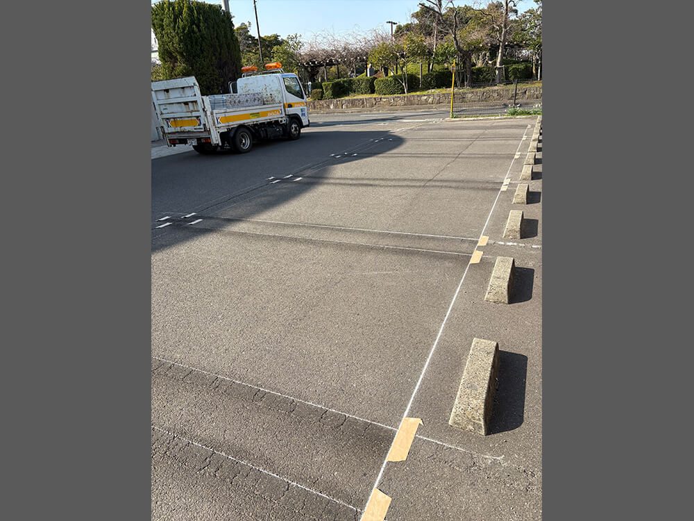 駐車場ラインの引き直し工事をしました